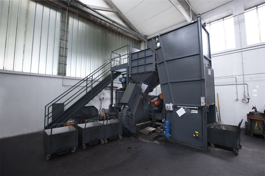 L’azienda inoltre dispone di un impianto per il trattamento dei rottami ferrosi. Un sistema avanzato con una doppia funzionalità: ridurre il volume del truciolo e recuperarne l’olio emulsivo.